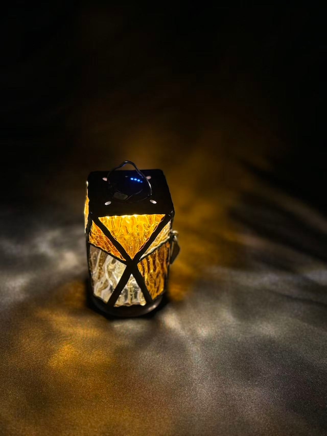 glassbroke.nori 様のステンドグラスシェード 『dual』 (デュアル) 温かみのある暖色系のお色味 角度によって くびれて見えたり、 膨らんで見えたり、 そんなシェードです✨ ※掲載写真のgoal zeroとランタンスタンド等の小物は商品に含まれておりません。参考イメージとしてご覧ください。