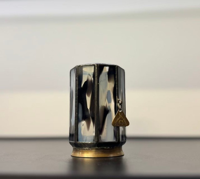 glassbroke.nori 様のステンドグラスシェード 『dual』 (デュアル) 温かみのある暖色系のお色味 角度によって くびれて見えたり、 膨らんで見えたり、 そんなシェードです✨ ※掲載写真のgoal zeroとランタンスタンド等の小物は商品に含まれておりません。参考イメージとしてご覧ください。