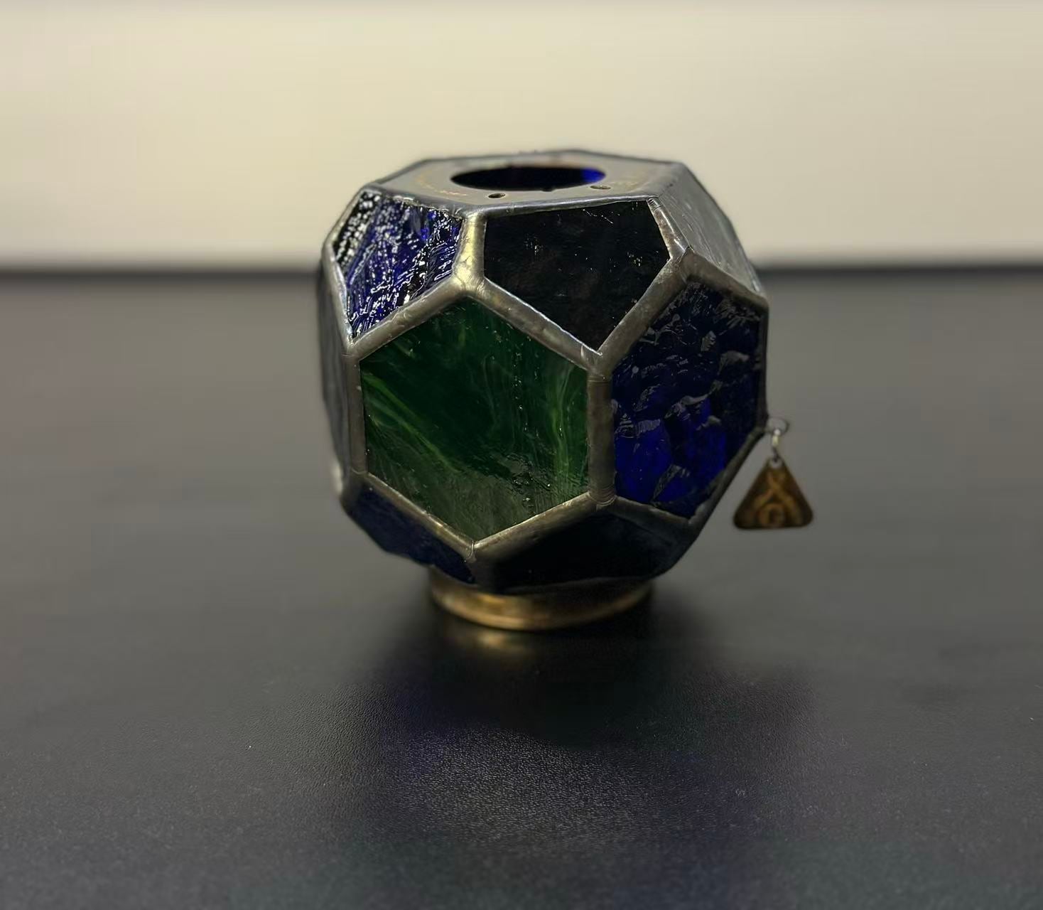 無骨さと繊細さを併せ持つ多面体のステンドグラスは、
