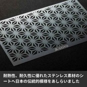 耐熱性、耐久性に優れたステンレス素材のシートへ日本の伝統的模様をあしらいました。