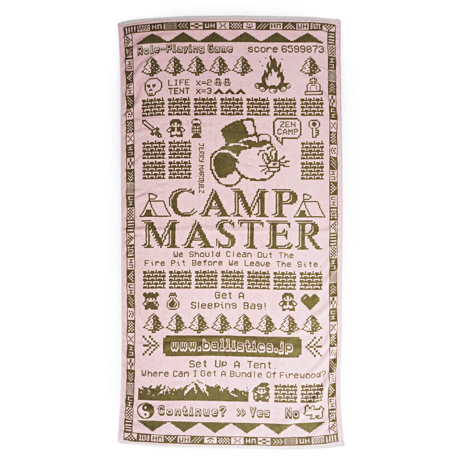 図柄はいつもお世話になっているジェリー鵜飼さんデザインのジェリーマルケスモチーフにした架空のゲーム「CAMP MASTER」柄になります。