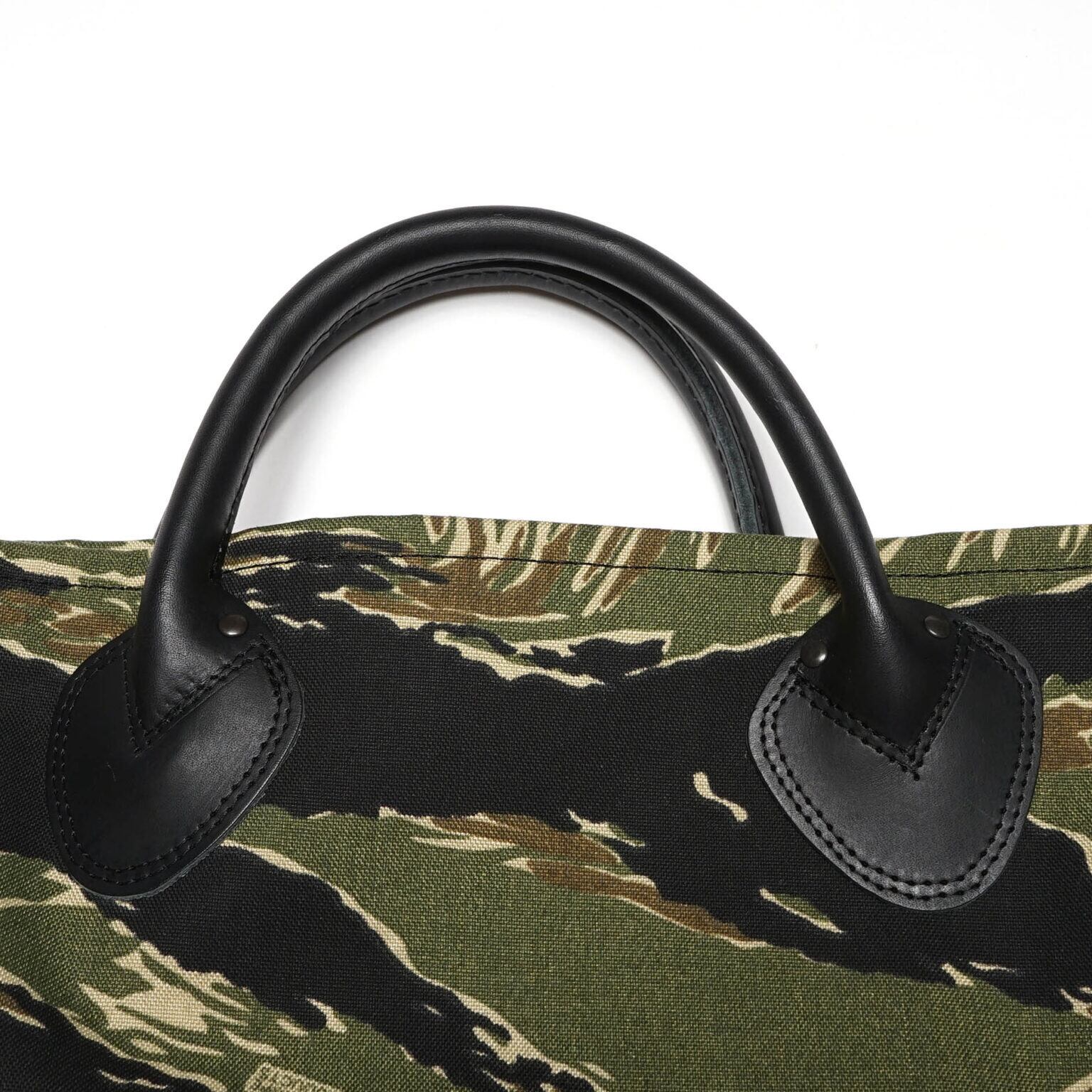 ハンドルは極厚の牛革を忠実な抜き起こし、ステッチングやリベットの打ち方にも配慮しています。