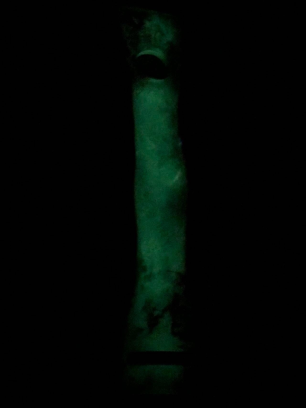 (ブラックライトを1分程照射するとほのかに輝きます。)