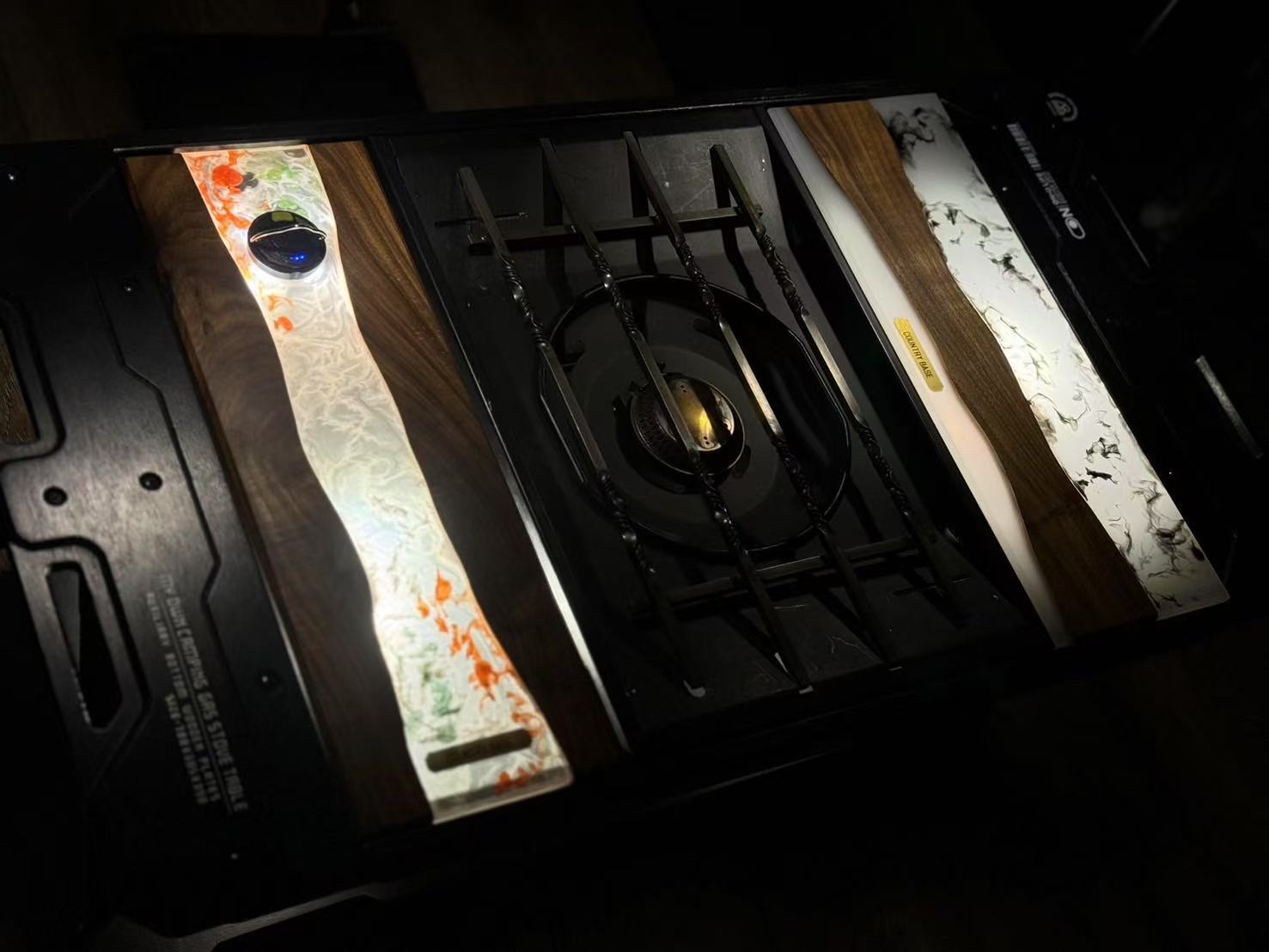 ブラックウォールナット×レジン×蓄光のコラボレーションで、幻想的な雰囲気を演出します。