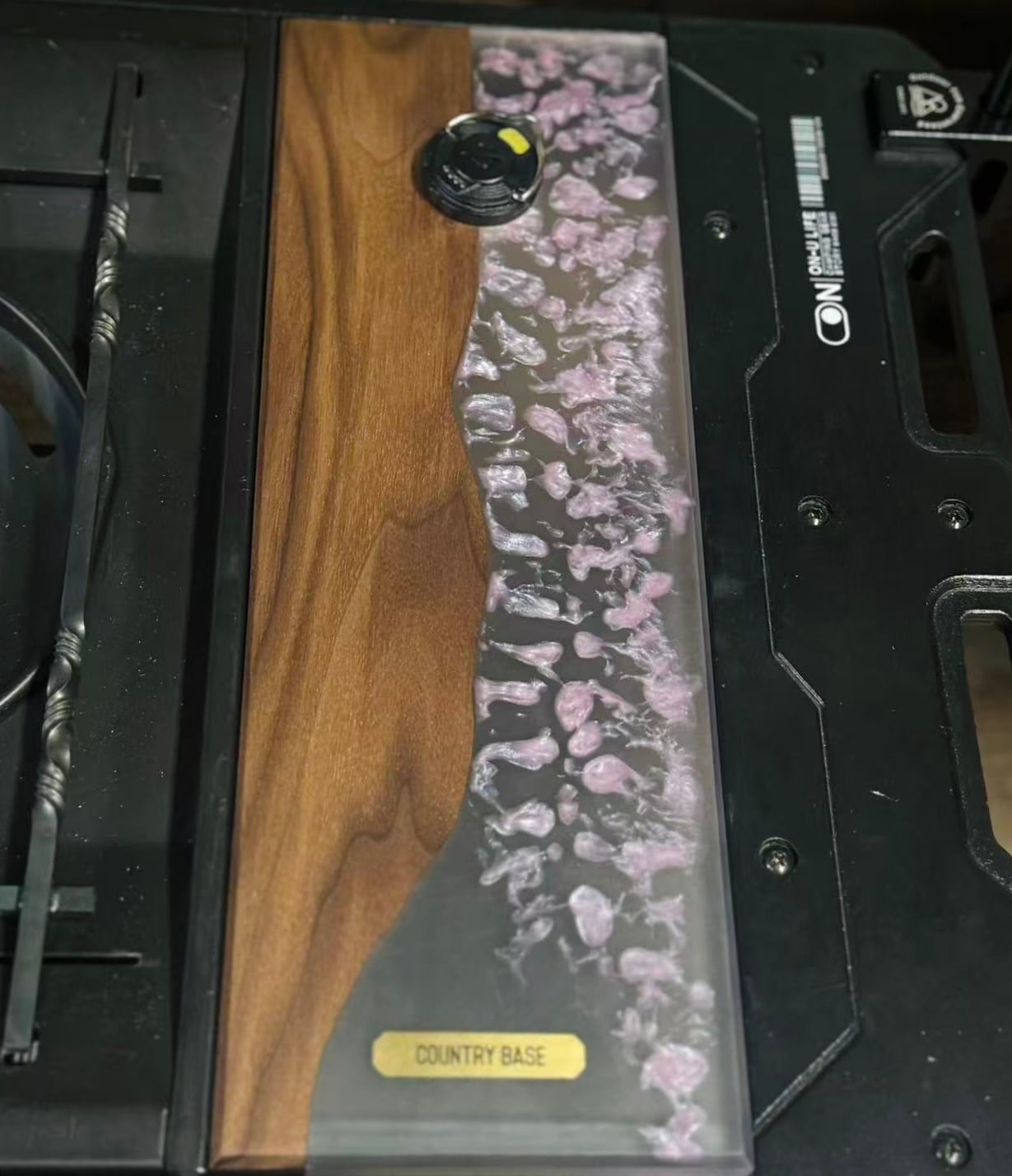 深みのあるブラックウォールナットの木目との洗練された組み合わせです、 日本の四季を感じさせる一枚に仕上げました。